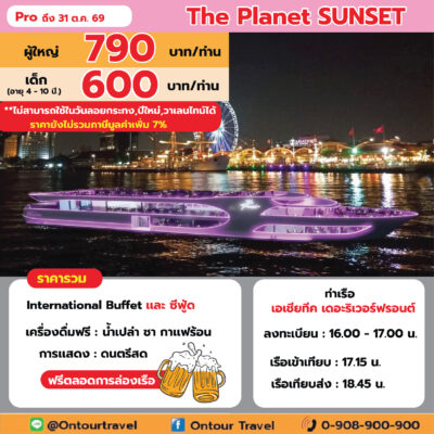 *เมนูอาหาร และ เส้นทางล่องเรือ อาจมีการปรับเปลี่ยนตามความเหมาะสม โดยไม่แจ้งให้ทราบล่วงหน้า